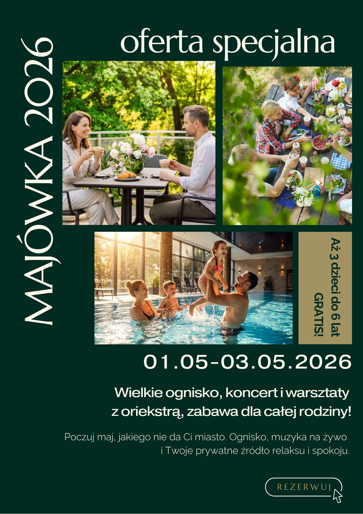 Dzieci: Do lat 3 goszczą u nas gratis. Dzieci 4-7 lat – 50% ceny.